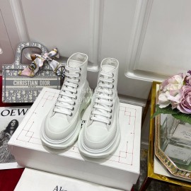 Alexander Mcqueen New Thick Soled Retro High Top Canvas Shoes For Men And Women White