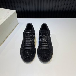 Alexander Mcqueen Rhinestone Leather Casual Shoes For Men And Women Black