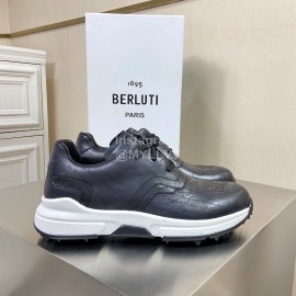 Berluti Leather Lace Up Sneakers Black For Men