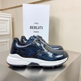 Berluti Leather Lace Up Sneakers For Men Blue