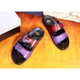 Berluti Egio Scritto Fashion Leather Slippers For Men Purple