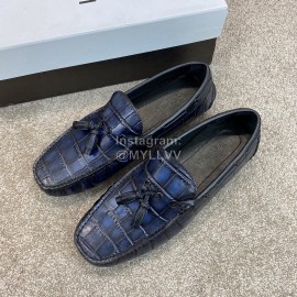 Berluti Crocodile Embossed Leather Tassel Shoes For Men Blue