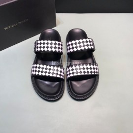 Bottega Veneta Black Plaid Calf Leather Slippers For Men