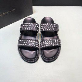 Bottega Veneta Black Soft Woven Cowhide Sandals For Men