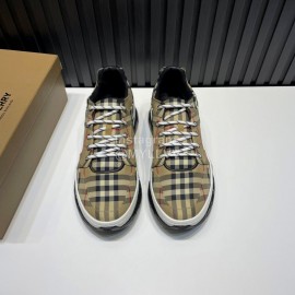 Burberry Vintage Plaid Leather Velcro Lace Up Sneakers For Men