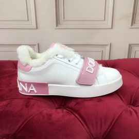 Dolce Gabbana Winter Silk Cowhide Wool Casual Shoes For Men And Women Pink