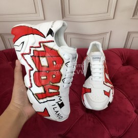 Dolce Gabbana Silk Leather Sneakers For Men And Women Red