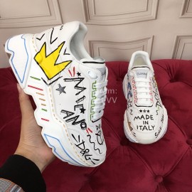 Dolce Gabbana White Silk Leather New Casual Shoes For Men And Women