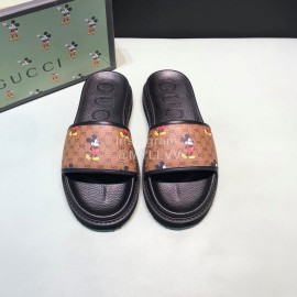 Gucci Cowhide Mickey Printed Vamp Slippers For Men Brown