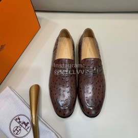 Hermes Cowhide Ostrich Pattern Loafers For Men Coffee