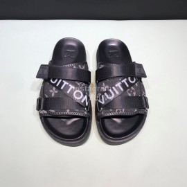 LV Black Calf Leather Ribbon Honolulu Slippers For Men