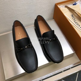 LV Black Cowhide Hardware Buckle Loafers For Men