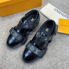 LV Calf Leather Lace Up Velcro Casual Sneakers For Men Black