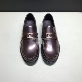 LV Calf Leather Letter Buckle Loafers For Men Coffee