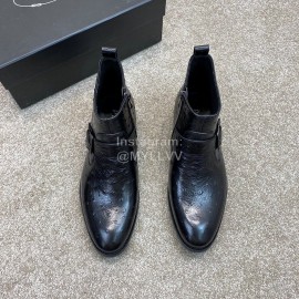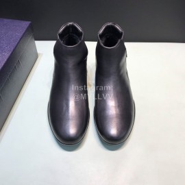 Prada Black Leather Elastic Cloth Plush Short Boots For Men