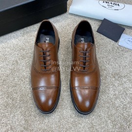 Prada New Cowhide Lace Up Casual Business Shoes For Men Reddish Brown