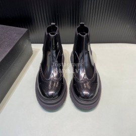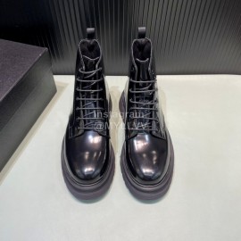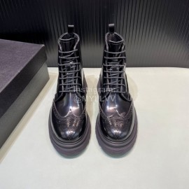 Prada Calf Leather Canvas Lace Up High Top Shoes For Men Black