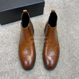Prada Cowhide Elastic Cloth Short Boots For Men Brown
