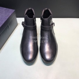 Prada Cowhide Elastic Cloth Plush Short Boots For Men Black