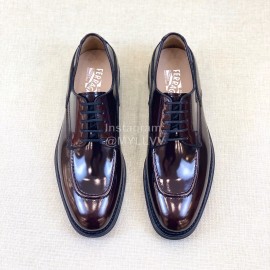 Ferragamo Lace Up Cowhide Business Shoes For Men Brown