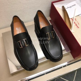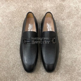 Ferragamo New Leather Gancini Buckle Business Shoes For Men Black