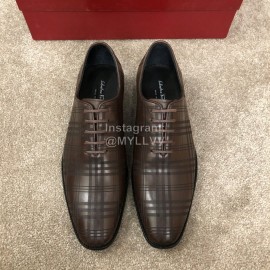 Ferragamo Plaid Cowhide Lace Up Business Shoes For Men