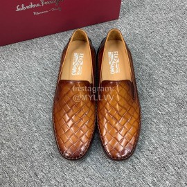 Ferragamo Oil Waxed Calf Leather Shoes For Men