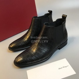 Ferragamo New Plaid Calf Leather Casual Chelsea Boots For Men Black
