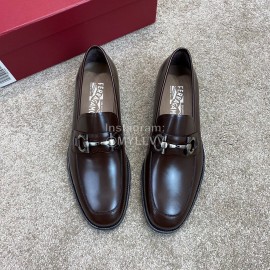 Ferragamo Classic Calf Leather Business Shoes For Men Coffee