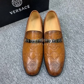 Versace New Embroidered Cowhide Casual Loafers For Men Brown