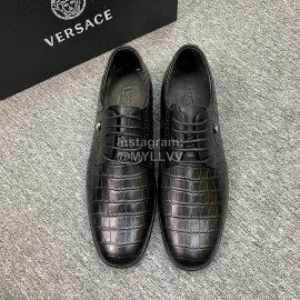 Versace New Crocodile Leather Lace Up Business Shoes For Men Black