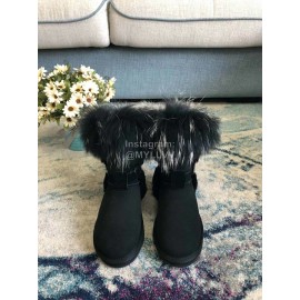 Australia Luxe Collective Black Leather Warm Wool Winter Short Boots For Women