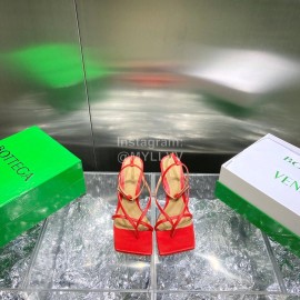 Bottega Veneta Spring Fashion Sheepskin Square Head High Heel Sandals Orange Red