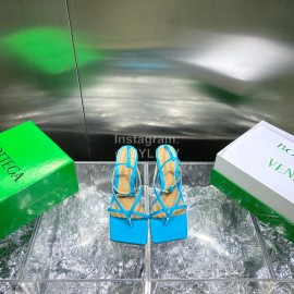 Bottega Veneta Spring Fashion Sheepskin Square Head High Heel Sandals Blue