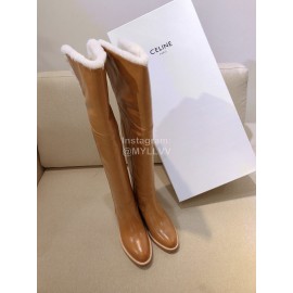 Celine Classic Brown Calf Warm Wool Long Tube Over Knee Boots For Women
