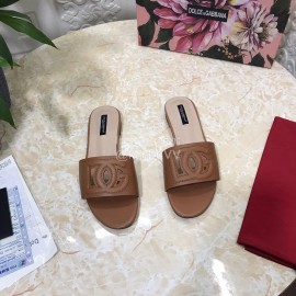 Dolce Gabbana Cowhide Flat Heeled Slippers For Women Brown
