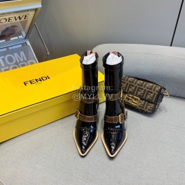 Fendi Patent Leather High Heeled Short Boots For Women Black