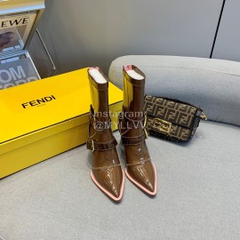 Fendi Patent Leather High Heeled Short Boots For Women Brown
