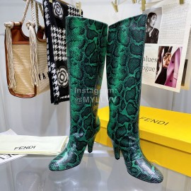 Fendi Python Leather High Heeled Long Boots For Women Green