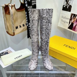 Fendi Python Leather High Heeled Long Boots For Women Brown