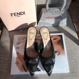 Fendi Spring Summer New Shining Sequin Pointed High Heel Sandals For Women Black