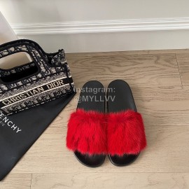 Givenchy Autumn Winter Soft Mink Hair Flat Heel Slippers For Women Red