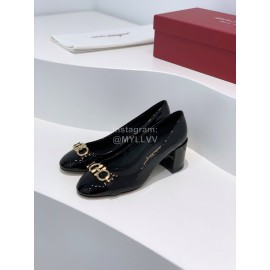Ferragamo Fashion Gancini Buckle Patent Leather High Heels For Women Black