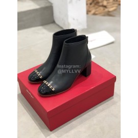 Ferragamo Cowhide Thick High Heeled Short Boots For Women Black