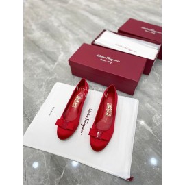 Ferragamo Viva Bow Silk Satin Thick High Heeled Ballet Shoes For Women Red