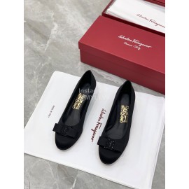 Ferragamo Viva Bow Sheepskin Thick High Heeled Ballet Shoes For Women Black