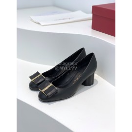 Ferragamo Viva Fashion Bow Thick High Heels For Women Black