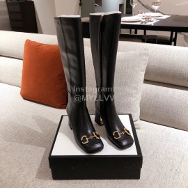 Gucci Autumn Winter Leather High Heeled Long Boots For Women Black