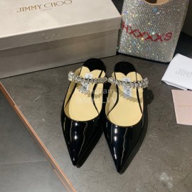 Jimmy Choo New Patent Leather Flat Heeled Sandals For Women Black