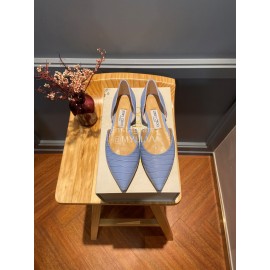 Jimmy Choo Soft Embossed Leather Pointed Shoes For Women Blue